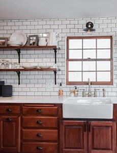 Now, let’s head into the kitchen, where we faced the challenge of limited space. But don’t you worry, we had plans to tackle this challenge. Our clients decided to embrace the open-shelving concept, ditching the old, cramped upper cabinets and lower soffits. And guess what? It not only made the space feel so much larger, but it also provided extra room for storage while keeping the room bright and open. These shelves are the perfect place to display those adorable white dishes and vintage finds to add the perfect touch of personality.