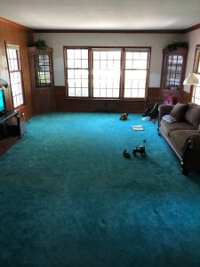 First things first, that green carpet had to go! I have never been more excited to see something leave a house… I know the clients felt the same way. That old green carpet had this home looking like a cave stuck in the 1970’s. But we had plans to bring it back to life! For flooring the clients chose a gorgeous wood-look luxury vinyl plank flooring. Not only does it give off the perfect rustic vibe, but it’s also super durable, affordable, and easy to clean. Once those planks were in place, the entire living area came to life with warmth and elegance. Goodbye, green carpet, and hello to a brand-new room!