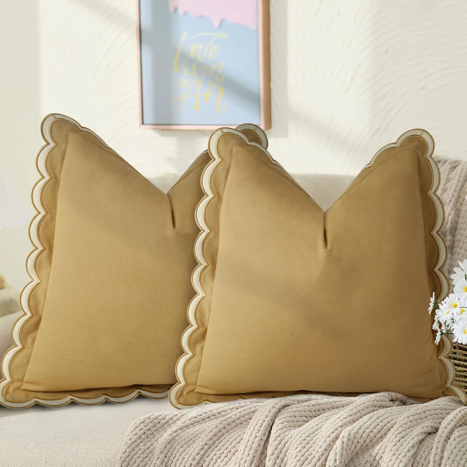 Option 8 leans a little warmer with a rich coffee tone and the same scalloped edging. It’s a great layering piece that adds depth without stealing the spotlight. Both of these covers instantly give your space a subtle nod to fall.