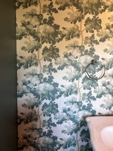 If I’m being honest, this whole update is because over the last few years my design style has really evolved from a more traditional, farmhouse, European inspired, to a more eclectic style with timeless influences. The original plan was wallpaper, penny tile, and keeping the existing fixtures. Below is a photo of the wallpaper I landed on.