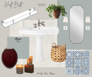 Ok… so I’m annoying even myself with this one. This powder bath was originally updated only 5 years ago and has been through a few update plans already. What started as a quick refresh turned into a “do I actually hate this floor tile?” spiral (which is yes… I think I do), and now we’re here. The goal isn’t a full gut job, because that would be insane, just an update that makes the space feel intentional and helps me stop glaring at the tile every time I walk in.